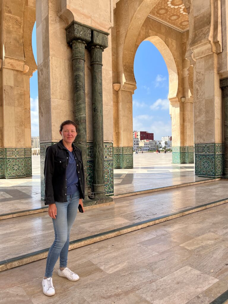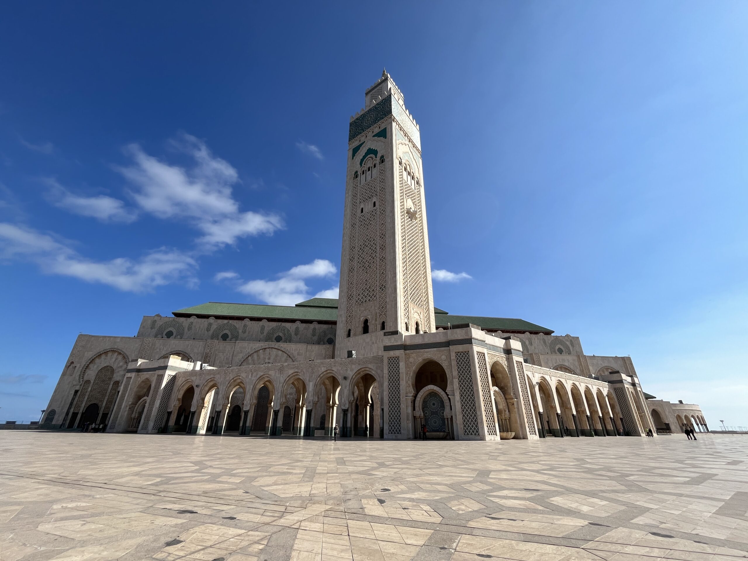 Casablanca hatten wir eigentlich nicht auf unserer Liste, da alles, was ich darüber gehört habe, den Eindruck vermittelte, dass die Stadt nicht so aussieht wie im gleichnamigen Film (den ich nie gesehen habe) und nicht sonderlich schön sein soll. Allerdings ist sie ein wichtiger Verkehrsknotenpunkt, weshalb es uns für eine Nacht hierhin verschlagen hat. Wir übernachten in unserem besten AirBnB in Marokko, essen auf einem Fischmarkt mit zweifelhaften Hygienebedingungen (kennt ihr die Szene im Film „Das Parfüm“ vom Fischmarkt?) und besuchen am nächsten Morgen die Moschee Hassan II (Wikipedia), eine der größten Moscheen der Welt und eine der wenigen, die man als Nicht-Muslim betreten darf. Wieder einmal versucht uns ein Taxifahrer übers Ohr zu hauen und verlangt für eine Fahrt 120 DH – letzten Endes zahlen wir nur 20 DH. Wir werden langsam besser. 😉