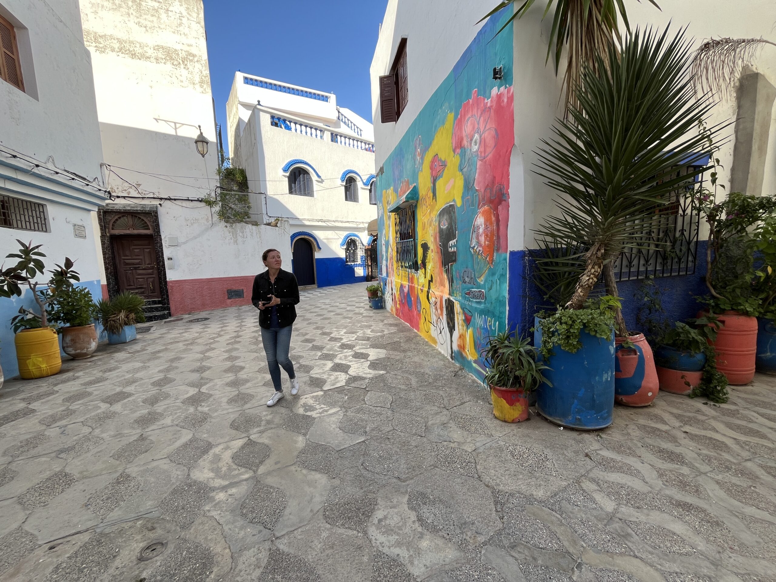 Nach all der vielen Reiserei zieht es uns mal wieder ans Meer. Asilah liegt quasi „auf dem Weg“ und wir entscheiden uns, hier ein paar Tage am Meer abzuhängen und die nächsten Wochen zu planen. Da die Auswahl an Hotels in unserer Preisklasse sehr begrenzt war, haben wir uns ein ganzes Dar über drei Stockwerke für uns allein gemietet. Asilah ist wie aus dem Ei gepellt: schöne Gässchen, ein bisschen Street Art, ein sauberer Strand, gute Restaurants und abends ein Markt mit Street Food – weshalb es auch zu den Lieblingszielen der Marokkaner gehört. Nachdem wir alles Nötige geplant, Wäsche gewaschen und uns einen standesgemäßen Sonnenbrand zugezogen haben, ziehen wir zufrieden weiter.