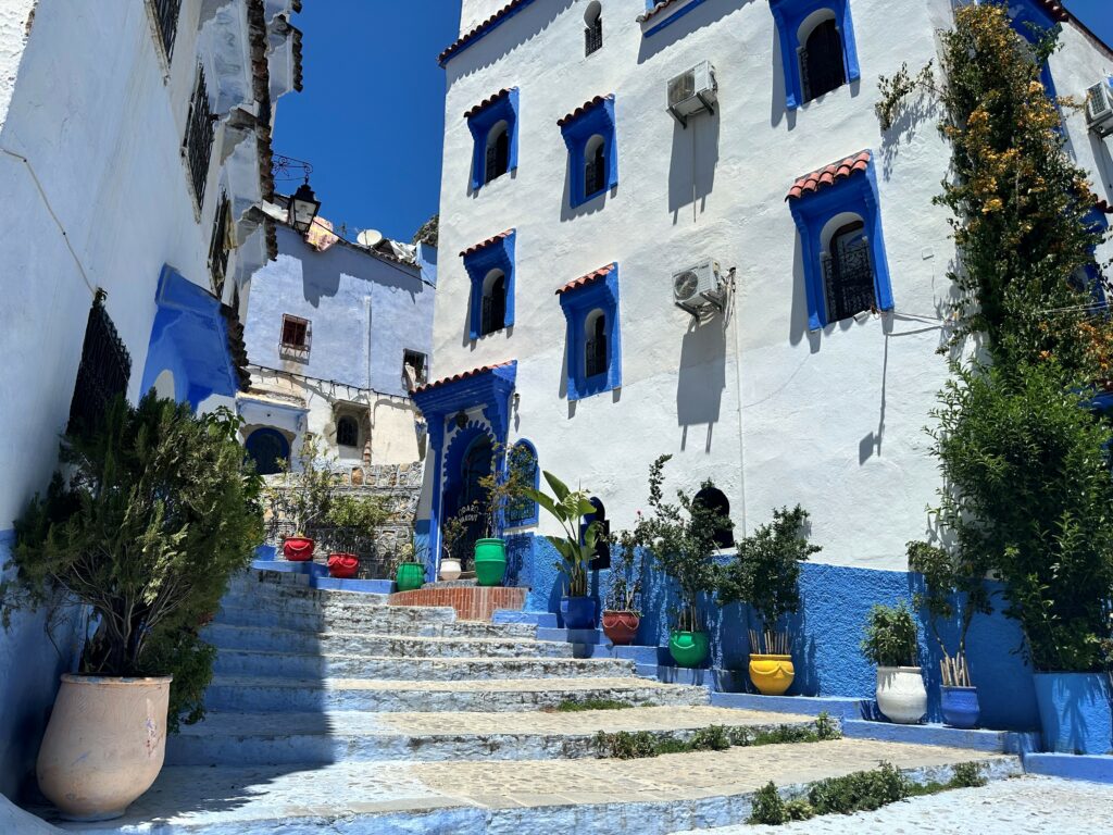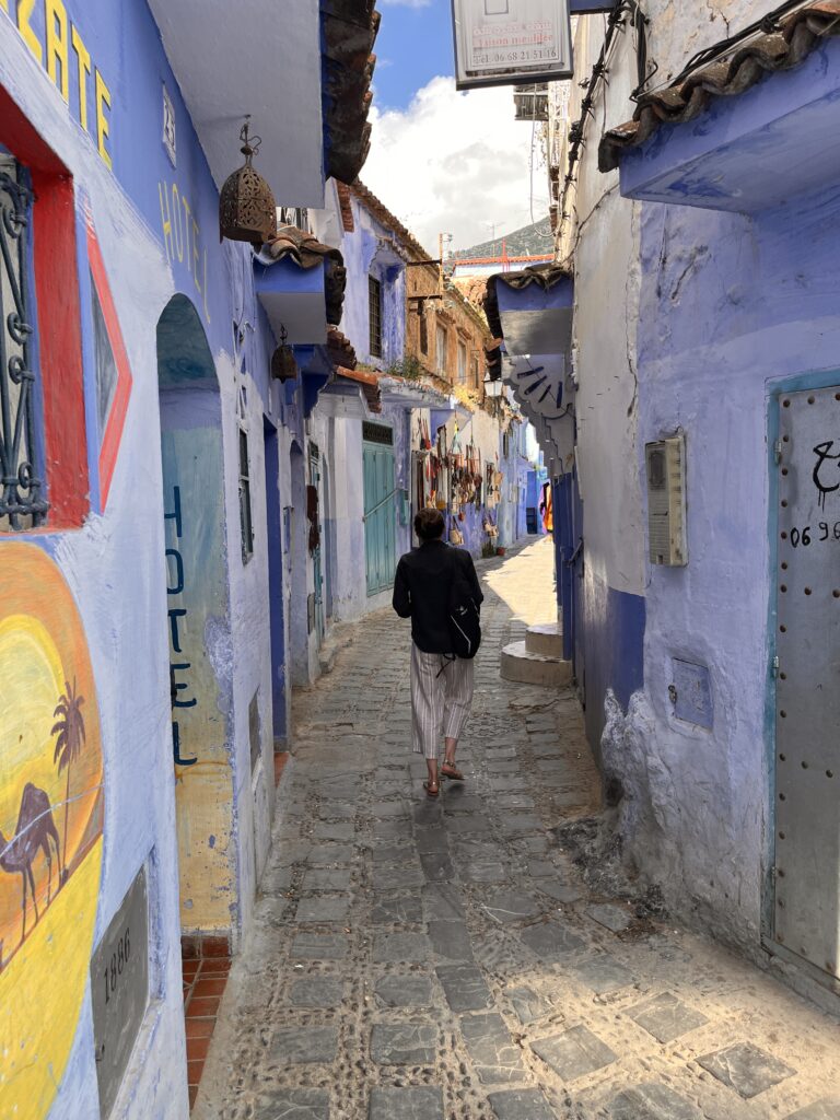 Wann immer wir die Stadt erkunden, werden wir gefragt, ob wir Gras kaufen wollen – liegt wohl an der Lage hier im Rif-Gebirge, in dem halboffiziell Cannabis angebaut wird (sucht mal nach dem Ort Ketama). Angeblich stammt die Hälfte des weltweit im Umlauf befindlichen Weeds aus diesem Gebirge. Selbst die Restaurant-Promoter fragen hier erst, ob man essen möchte, und dann, ob man Gras kaufen will. Beim Frisör lasse ich mir noch einen echt marokkanischen Haarschnitt mit Fade bis zur Glatze machen, und am nächsten Tag machen wir uns auf den Weg nach…