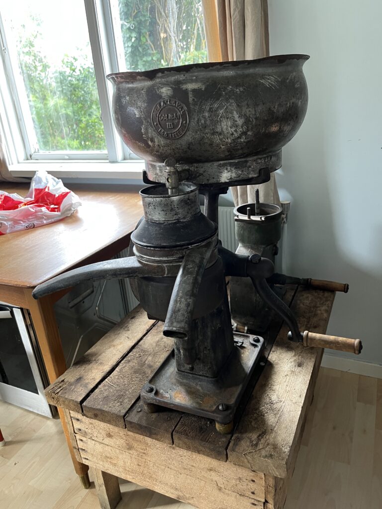 Simon will seine Ingenieurehre verteidigen und macht es sich zur Aufgabe einen uralten Milchseparator in Gang zu bringen. Er soll den Rahm von der Milch trennen, den man dann wiederum zu Butter verarbeiten kann. Die Anleitung zu diesem Gerät findet man nur noch in einem Museum in Norwegen, aber die Technik hat sich bis heute nicht geändert. Am Anfang fehlen noch Teile, die er irgendwo auf der Farm wiederfindet und reinigen muss. Wir machen mehrere Versuchsläufe mit verschiedenen Parametern. Der Separator muss von Hand gekurbelt werden. Ein Fitnessstudio kann man sich echt sparen, wenn man eine Farm hat. Mit vereinten Kräften und YouTube schaffen wir es tatsächlich und dürfen unsere erste Ziegenmilchbutter probieren. Am Ende sieht der Milchseparator fast wie neu aus.