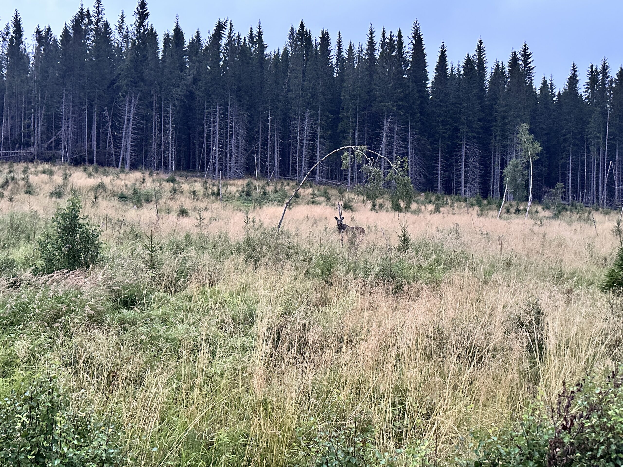 Unserem Host gehört ebenfalls ein See, auf dem wir jederzeit fischen gehen können. Ein Workawayer aus Frankreich zeigt uns, wie man mit dem Boot auf den See hinaus rudert und Netze setzt. Wir fahren mit dem Traktor zum See – in der Fahrerkabine ist nur Platz für einen, der Rest sitzt auf dem Anhänger. Nicht bequem, aber „it’s part of the fun“, sagt der Franzose. Rudern muss mein Gehirn erst mal verarbeiten, und dann soll ich auch noch das Boot drehen und vorwärts rudern – „WTF“. Auf dem Weg zur Farm sehen wir gleich mehrere Elche. Sie kommen bei Dämmerung aus dem Wald auf die Felder. Sie haben sehr lange Beine und sehen beim Laufen irgendwie unbeholfen aus.