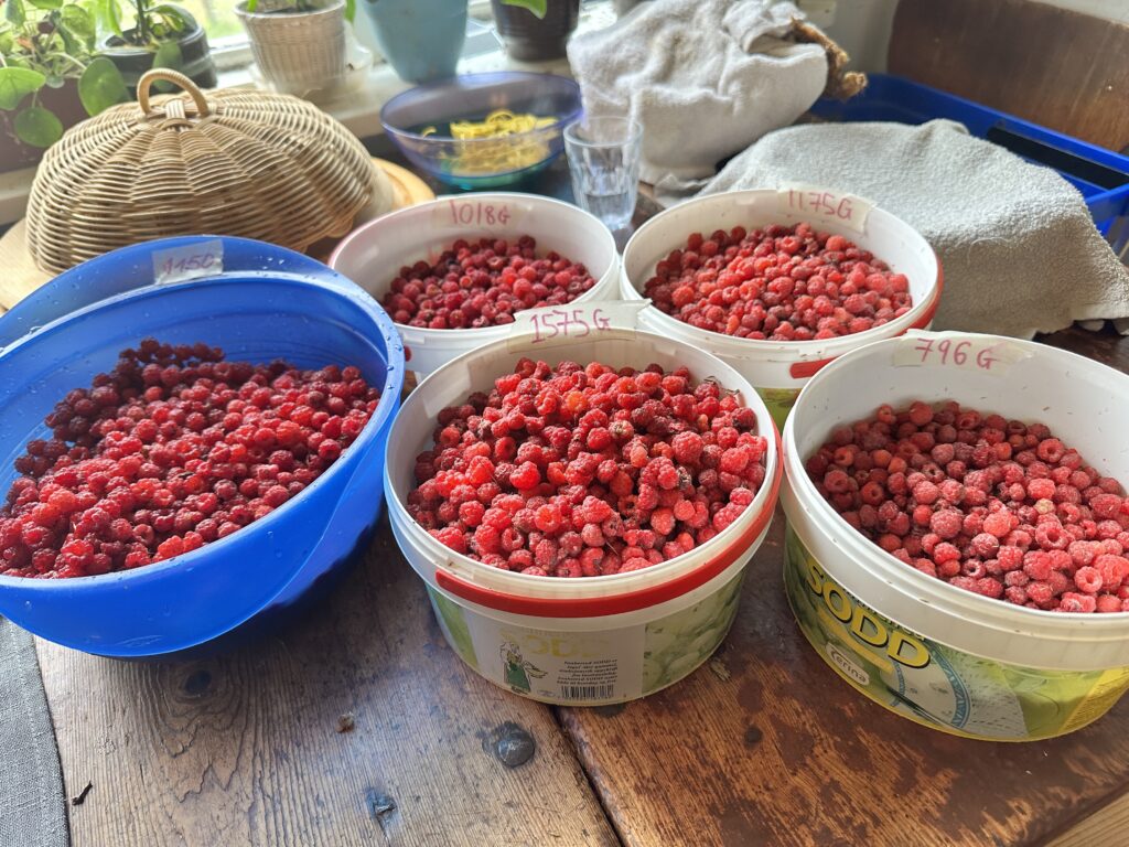Ich habe Glück, dass gerade Beerensaison ist und ich mich dabei „austoben“ kann. Wir sammeln Moltebeeren, Himbeeren und Heidelbeeren und stellen daraus Marmelade für die nächsten Generationen von Workawayern her. Na ja, ein Teil der Beeren wird ehrlicherweise gleich zum Frühstück verzehrt. Moltebeeren sehe ich zum ersten Mal. Der Geschmack erinnert mich etwas an Sanddorn, gemischt mit einer reifen Aprikose. Moltebeeren wachsen bevorzugt auf Mooslandschaften. Sie sind nicht so zahlreich, und ein guter Spot ist nicht leicht zu finden – dafür hat unser Host eine Karte angelegt. Himbeeren wachsen hier wild und sehr zahlreich, dafür muss man bei der Ernte aber ziemlich schnell sein, bevor sie einem vor der Nase wegfaulen. Die Wälder in Norwegen sind mit Teppichen aus Heidelbeeren ausgelegt. Die Saison ist etwa von Mitte August bis September. Das Sammeln macht echt viel Spaß. Auch bei unserer Weiterreise durch Norwegen gibt es nur noch frische Heidelbeeren zum Frühstück.