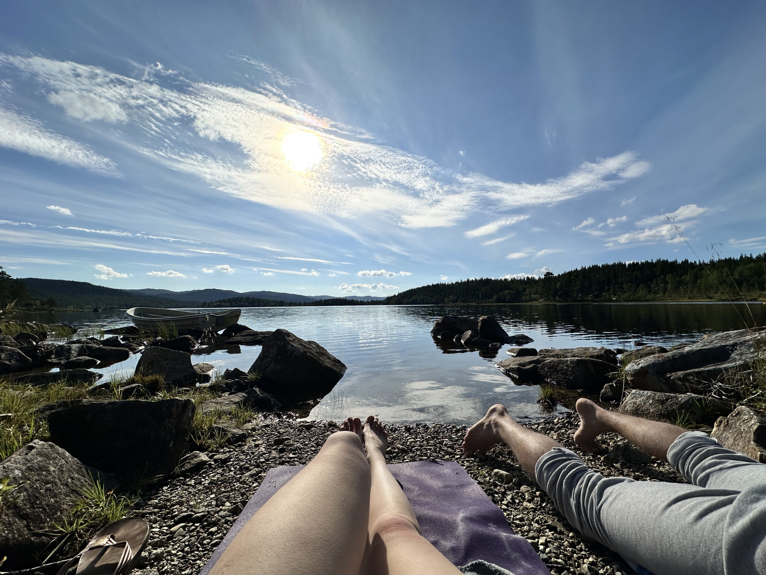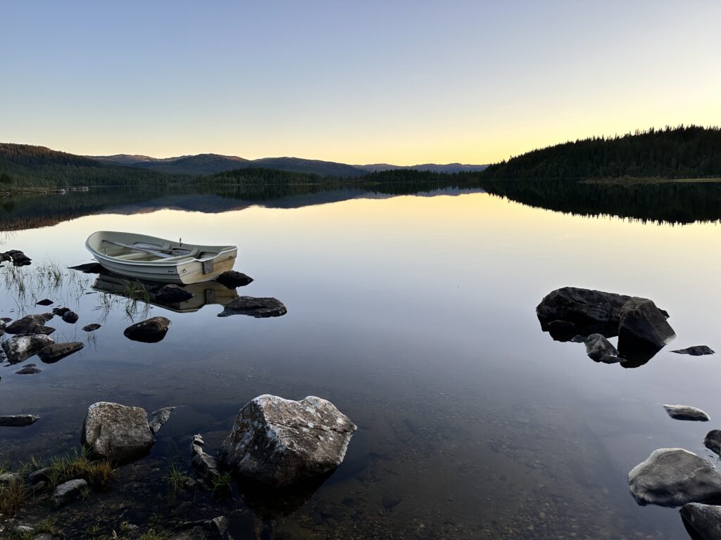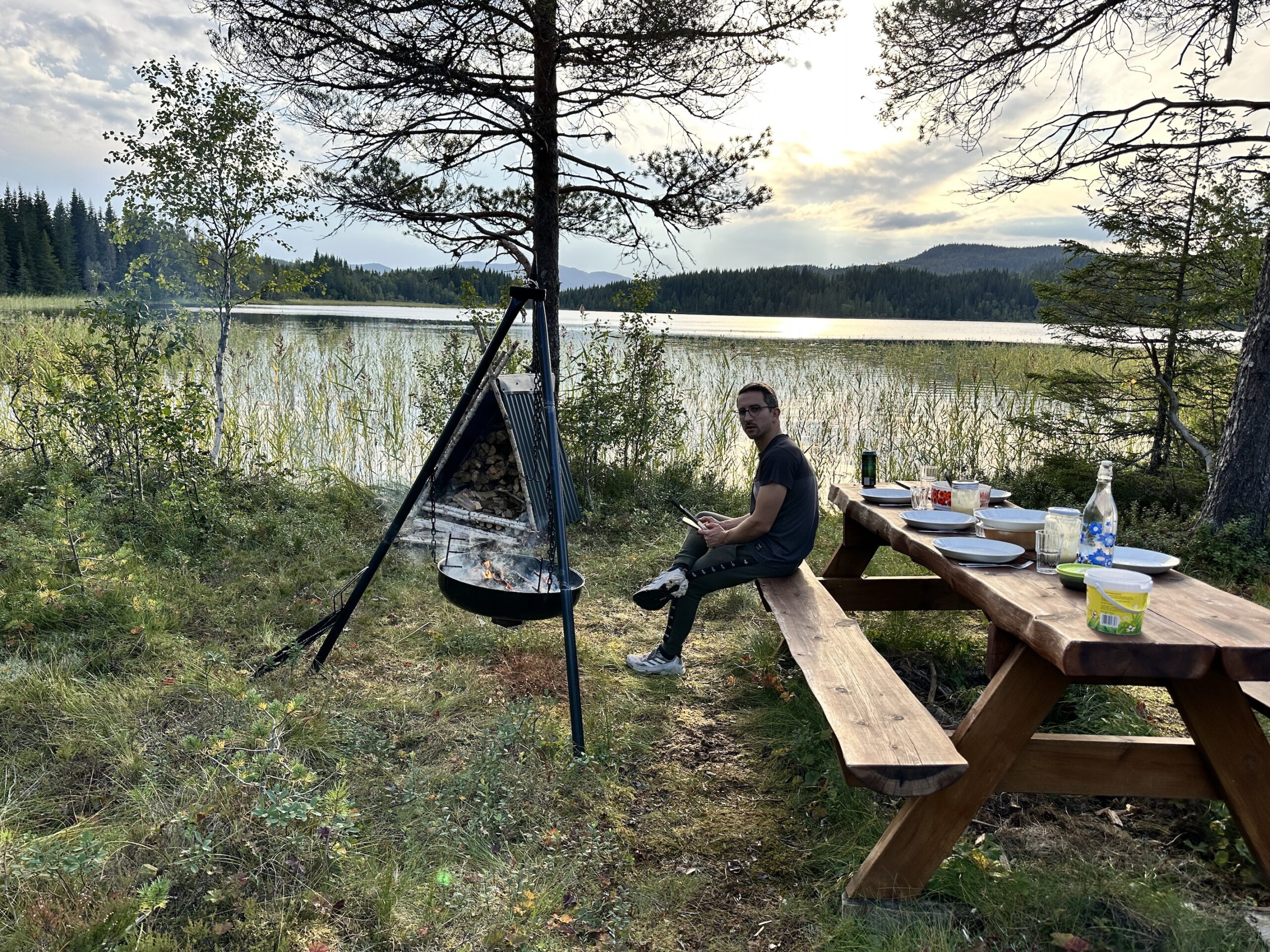 Wir haben Glück, und in der letzten Woche unseres Aufenthalts wird das Wetter nochmal sommerlich. Für einen Tag machen wir Urlaub von der Farm und fahren an die Waldhütte am See. Hier verbringen wir einen schönen Abend unter einem sternbedeckten Himmel. Am nächsten Morgen schwimmen wir im eiskalten See und wärmen uns anschließend beim Frühstück in der Hütte auf. Den Rest des Tages chillen wir am See und pflücken zwischendrin ein paar Heidelbeeren. Zum Abendessen geht es wieder zurück zur Farm. Nach dem Abendessen fahren wir zum Fischen hinaus, und am nächsten Abend gibt es den frischen Fisch vom Grill am See.
