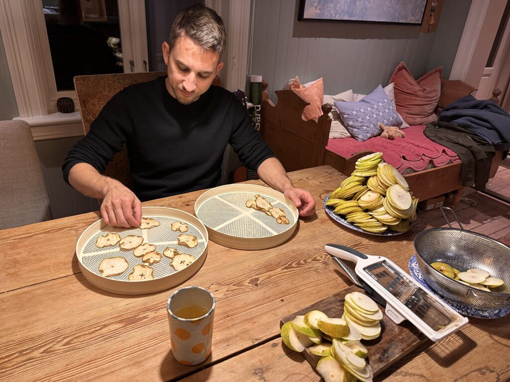 Für eine Woche wird ihre Küche zu einer Apfelmus – und Birnenchips-Fabrik. Das Ergebnis kann sich sehen lassen – mindestens ein Jahresvorrat für die Familie. Die Äpfel und Birnen pflücken wir vorher noch in Nachbars Garten. Simon darf mit einem anderen Workawayer aus Bulgarien die Fliesen im Flur entfernen. Die Hosts kennen seinen Namen nicht, und wir verstehen ihn auch nicht auf Anhieb – und so bleibt er bis etwa zwei Tage vor Abreise „the other workawayer“. Wir genießen das Leben im norwegischen Landhaus: ausgiebig frühstücken, leckere Abendessen kochen, spazieren gehen und Geschichten mit dem „other workawayer“ austauschen. Gleich am Montag, also am dritten Tag nach Ankunft, bekommen wir die lang ersehnte Nachricht: Unser Gepäck ist in einem Lagerhaus in der Nähe von Kristiansand in Südnorwegen. Es sind ca. vier Stunden Autofahrt, aber wir haben noch mehr Glück – das Gepäck kann mit dem nächsten Bus an einen Bahnhof in unserer Nähe gebracht werden. Man muss dazu sagen, dass dieser Rücktransport von einer norwegischen Firma geregelt wurde, wo man sich wirklich nett und zuvorkommend um alles kümmerte. Der Mitarbeiter rief sogar nochmal an, um uns zu informieren, dass der Bus etwas früher kommt.