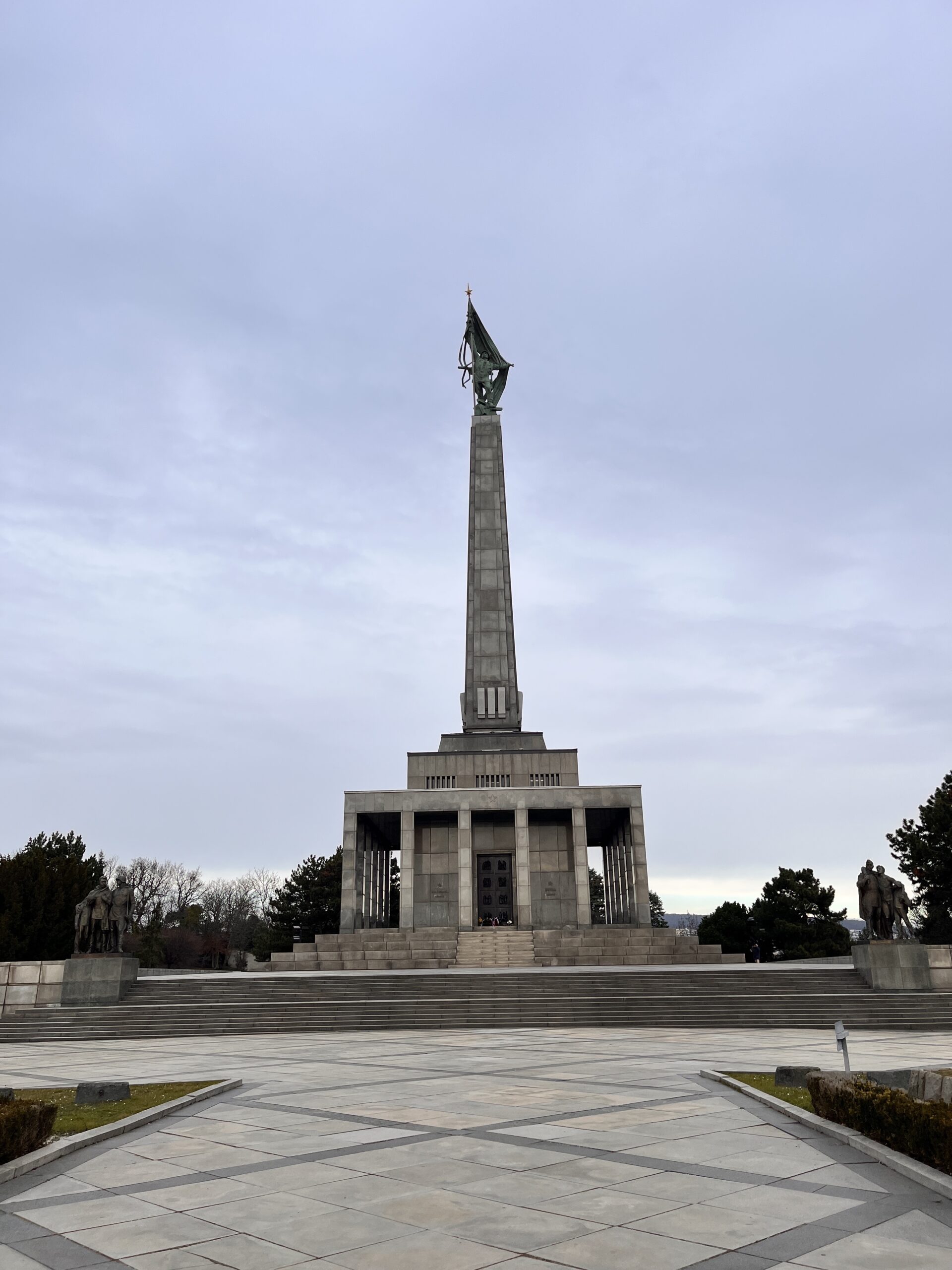 Bratislava ist eigentlich nur eine Notlösung. Wir wollen zu einem Konzert in Wien, das nach Ende unseres Housesits stattfindet. D.h. Unterkunft in Wien finden oder ins benachbarte Bratislava ausweichen. Wien ist an dem Wochenende unbezahlbar und somit ist die Entscheidung klar. Bratislava hat eine schöne kleine Altstadt, ein Schloss und ein riesiges Monument auf einem Hügel. Das Monument wurde für die russischen Soldaten errichtet, die ihr Leben bei der Befreiung von Bratislava während des zweiten Weltkriegs verloren haben. Ähnliche Monumente findet man auch in Wien und Budapest.