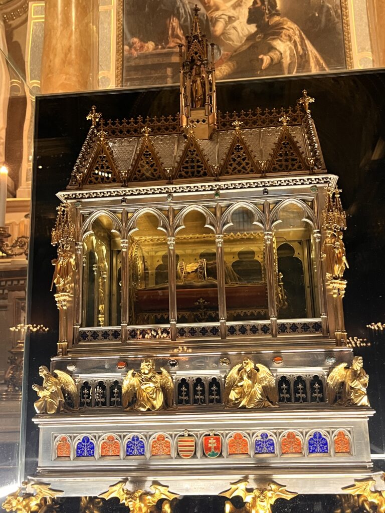 Dem Gründer des ungarischen Reichs, dem ersten ungarischen König Stephan, oder István, ist eine sehr schöne Basilika gewidmet. Diese beherbergt die noch erhaltene Hand des alten Stephan. Dieses Händchen beschert ihm die Heiligsprechung. Da hat jemand einfach alles in seinem Leben abgeräumt und ist noch nicht mal jung gestorben. Ein glückliches Händchen 🙂