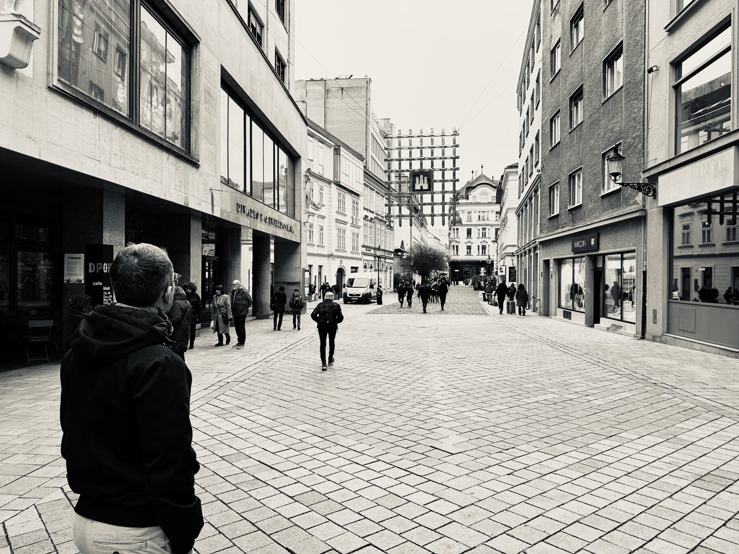 Unsere Unterkunft befindet sich außerhalb des Stadtzentrums in einem Wohngebiet. Viele Plattenbauten, grauer Himmel, Nebel und Kälte begleiten unseren Aufenthalt hier. Bratislava war mal Hauptstadt des Königreichs Ungarn, als die Osmanen im 16. Jahrhundert große Teile Ungarns besetzten. Sie liegt wie Wien an der Donau, hat deutlich weniger Einwohner (ca. 480 Tsd.) und steht an einem Scheideweg, zwischen weiterem Zerfall oder Erblühen. So wirkt es zumindest auf uns.