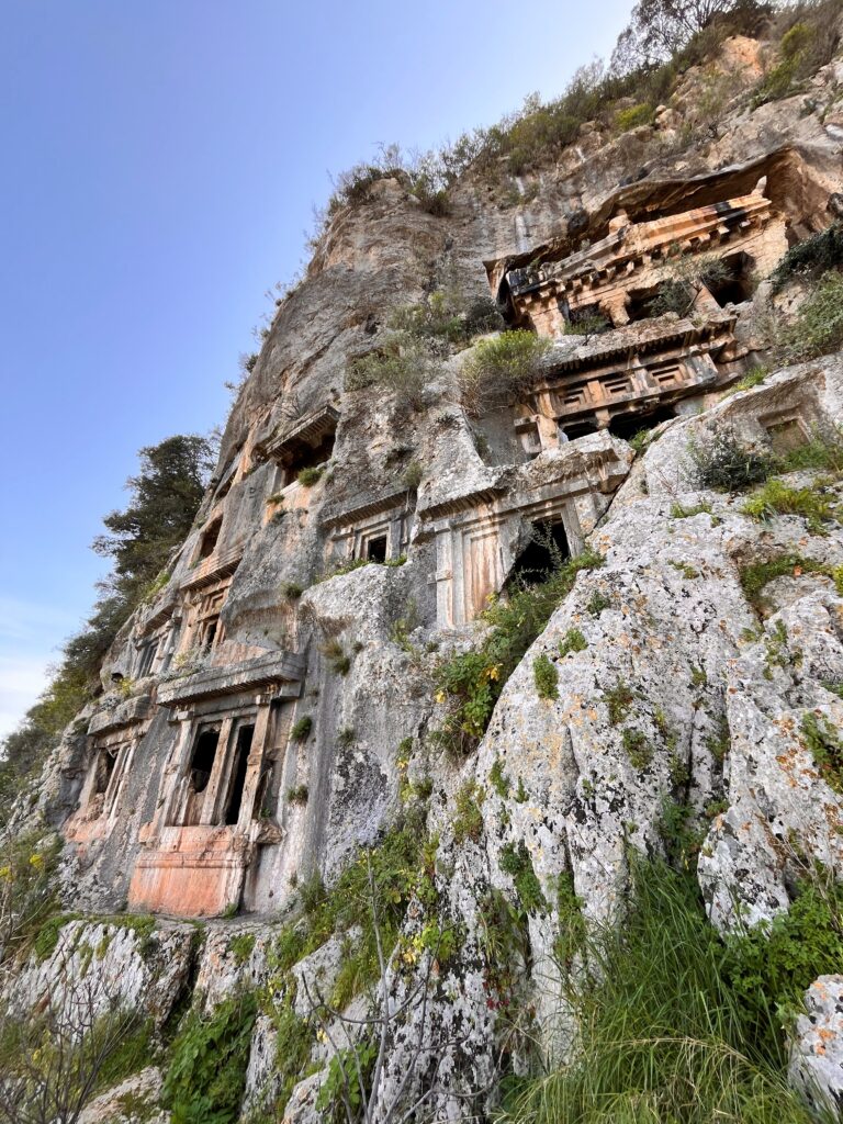 Wir freuen uns beim Schritt von der Fähre, endlich einen Fuß auf asiatischen Boden zu setzen. Nach so langer Zeit mal wieder ein neuer Kontinent – das wird sich vermutlich so schnell auch nicht ändern 😉 Wir gönnen uns einen Tag in Fethiye, um uns in der Türkei zu akklimatisieren. Die Stadt ist nett anzusehen, es gibt eine kleine Altstadt und ein paar Felsengräber, in der Saison soll sie aber von britischen Expats und Touristen überlaufen sein. Wir kommen in ersten Kontakt mit dem “Wildlife” in der Türkei – neben einer Katze, die Klara im Hostel probiert das Frühstück von der Gabel zu fischen treffen wir auf zwei freundliche Wildschweine, die den Müll der Anwohner durchwühlen. Sie erinnern mich ein bisschen an uns beide, wenn mal wieder durch die Gassen ziehen und nach etwas essbarem suchen. Außerdem sieht mir das Männchen ein bisschen ähnlich. Das Wetter hat sich seit Rhodos gehalten und soll auch die nächsten Tage so bleiben, deshalb schnüren wir unsere nicht vorhandenen Wanderstiefel und machen uns für einige Tage mit kleinem Gepäck auf den Weg. Unsere Reiserucksäcke dürfen wir im Hostel abstellen.