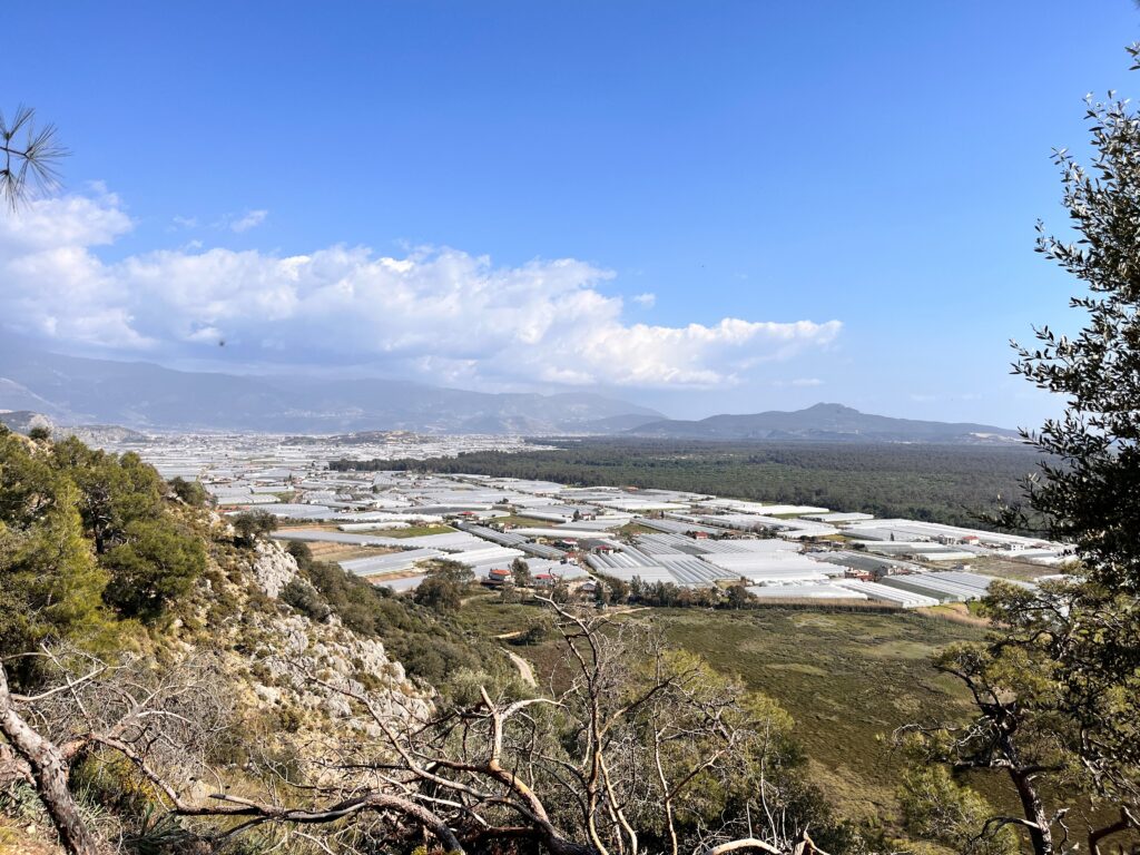 Unsere vierte Tagesetappe endet in Pydnai, einer Ruine, die gleichzeitig den Start des rund 18km langen Partara Beachs markiert. Von hier aus fragen wir uns durch zum Dolmuş in den nächsten Ort, von wo aus wir den Bus nach Kaş nehmen wollen. Die Wanderung dorthin soll überwiegend auf Asphalt und zwischen dem in dieser Gegend errichteten Meer aus Tomatengewächshäusern verlaufen, worauf wir keine Lust haben. Vom Dolmuş aus müssen wir nur noch ein paar hundert Meter zum Busbahnhof laufen, wo uns ein Bus nach Kaş bringen kann. Scheinbar fährt in ein paar Minuten schon einer, wir gehen zügig. Im Ort gibt es einige Hunde, nichts Überraschendes. Einer ist recht aggressiv, läuft auf uns zu und bellt, bevor ich irgendwie reagieren kann, hat er mich in den Hintern gebissen. Schöne Scheiße. Es fängt an zu bluten, den Bus haben wir verpasst, aber ein anderer soll in einer Stunde fahren. Es gibt hier keinen Arzt, in der Apotheke sagt man mir, ich solle die Wunde waschen. Klara holt mir eine Flasche Wasser im Supermarkt. Auf einer abgeranzten Stehtoilette in einem Döner Wasche ich mit der Flasche und Seife, die ich glücklicherweise im Rucksack habe, die Bisswunde. Der Bus kommt und lässt mich freundlicherweise am staatlichen Krankenhaus raus. Ich komme schnell dran, der Arzt und die gefühlten 25 Helferinnen sind nett und ein paar können sogar ein bisschen Englisch. Sie machen Jod auf die Wunde, ungefragt bekomme ich eine Tollwut Impfung und Antibiotika verschrieben.