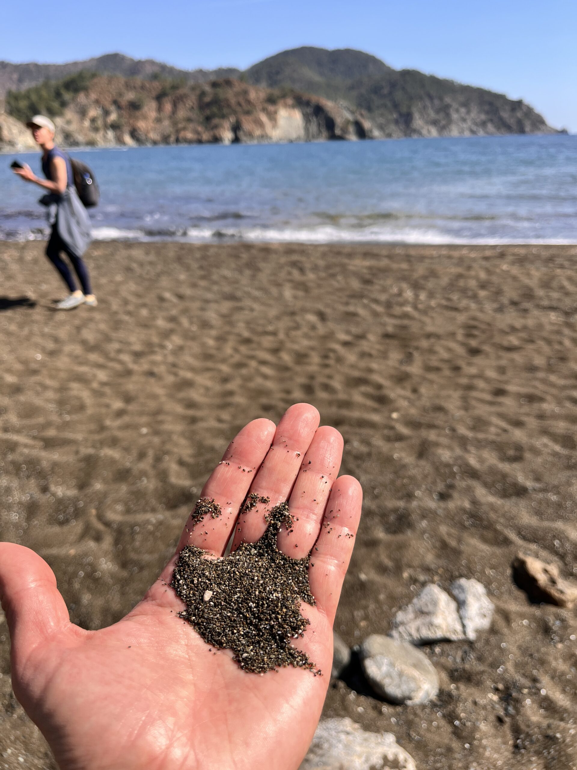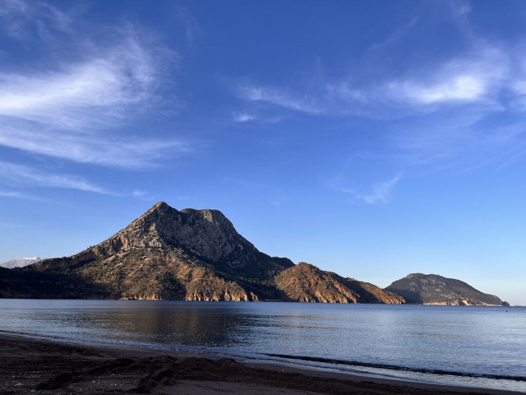 Nach diesem tierischen Erlebnis müssen wir uns erstmal ein bisschen neu orientieren, weshalb wir unsere Unterkunft in Kaş für ein paar Nächte verlängern. Glücklicherweise eignet sich Kaş ganz hervorragend für diese kurze Pause – es ist ein hübsches Städtchen direkt am Meer, es gibt alles was man braucht und trotz dem hier in der Saison wohl vorherrschenden Tourismus, hat es sich etwas Charme erhalten. Wir schmieden den Plan für die nächsten Tage, holen unser Gepäck aus Fethiye nach, und machen uns Ready für die nächsten Etappen. Das Reisen in der Türkei mit dem ÖPNV ist komfortabel und günstig, manchmal aber auch Zeit- und Nervenaufreibend, da man häufig nicht so genau weiß, wo und wann genau die Minibusse abfahren. So müssen wir nach unserer heutigen Busfahrt nach Kumluca viel zu lange auf den nächsten Dolmuş warten. Schließlich kommen wir abends aber doch in Karaöz in einer Pansiyon an, wo wir wieder herzlich begrüßt, und im Wohnzimmer der Familie mit einem leckeren Abendessen versorgt werden. Von hier aus starten wir den zweiten Abschnitt unserer Wanderung nach Adrasan. Da ich auf Antibiotika unterwegs bin, erlauben wir uns die ersten paar, uninteressanten Kilometer zu überbrücken indem wir bei einer jungen, russischen Familie mitfahren. Die nächste Etappe führt uns wieder entlang der Berge vorbei am angeblichen Highlight dieser Gegend, dem Leuchtturm von Gelidonya – wobei ich der Meinung bin, dass die Küste selbst das Highlight ist – und am nächsten Tag weiter über einen wesentlich steileren Weg nach Çıralı. Dieser Abschnitt führt ganz offiziell durch ein Loch im Zaun in die Ruinenstadt Olympus. Diese ist besonders aufgrund ihrer malerischen Lage direkt am Strand absolut sehenswert, wir schauen uns ein bisschen um und laufen dann am gefühlt endlosen Strand von Cirali vorbei zu unserem Bungalow. Hier wartet am nächsten Morgen das nächste Highlight auf uns, noch vor dem Frühstück nehmen wir ein paar zusätzliche km Weg auf uns, um die faszinierenden Feuer von Chimaira zu sehen. Auch hier entgehen wir wieder dem Eintritt, da sich um diese Uhrzeit niemand am Eingang befindet, und die Drehkreuze auf Durchgang geschaltet sind. Unsere letzte Tagesetappe führt uns fast überwiegend an der Küste entlang, die buchten und Strände sind noch traumhafter als auf den bisherigen Stationen. Wir machen trink- und snackstops an schönen Aussichtspunkten und an Stränden, an denen wir die Orangen und Mandarinen vertilgen, die wir in den Unterkünften geschenkt bekommen haben. An einem der letzten Strände nutzen wir endlich die Badesachen, die wir die ganze Zeit mit uns rumschleppen und schwimmen kurz im eiskalten Mittelmeer. Ich weiß nicht, ob ich schon jemals so klares Wasser im Meer gesehen habe. Das letzte Stück des Abschnitts ist etwas mühsam, es geht hoch und runter auf Schotter und als wir uns der Stadt nähern kann man schon von weitem die Bettenburgen entdecken. Wir kennen das schon von anderen Zwischenstopps auf unserer Wanderung: Es ist Nebensaison, viel an dem Ort ist auf Tourismus ausgerichtet, es wird gebaut und vieles ist geschlossen. Tekirova ist aber eine andere Hausnummer. Zum ersten Mal kommt die hässliche Seite des Tourismus klarer ans Licht: Neben den Luxushotels liegt Bauschutt, weil renoviert wird, Straßenhunde in den Hinterhöfen. Zwei freundliche ältere Herren erklären uns in fließendem, akzentfreiem Deutsch den Weg zur Bushaltestelle, wir entschließen uns spontan heute noch zurück nach Kaş zu unserem Gepäck zu fahren und von dort aus am nächsten Tag den Bus nach Antalya zu nehmen. Schön wars, auf dem lykischen Weg. Wunderschön sogar.