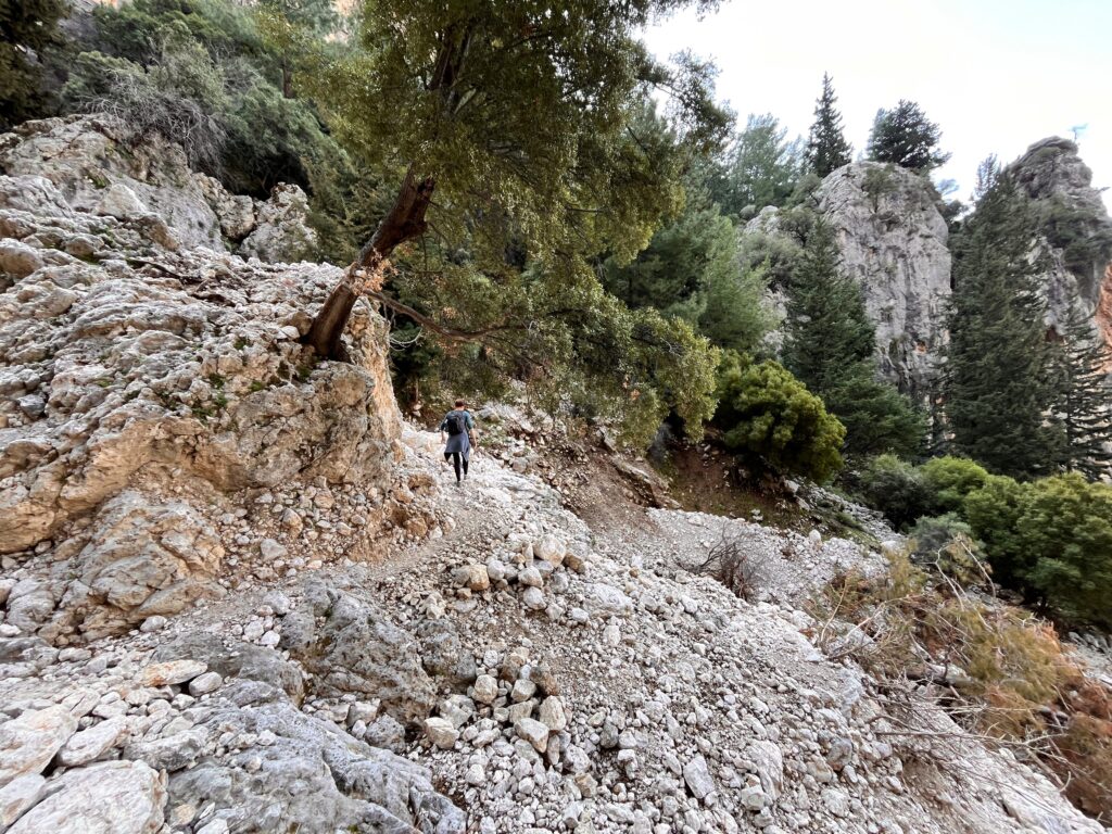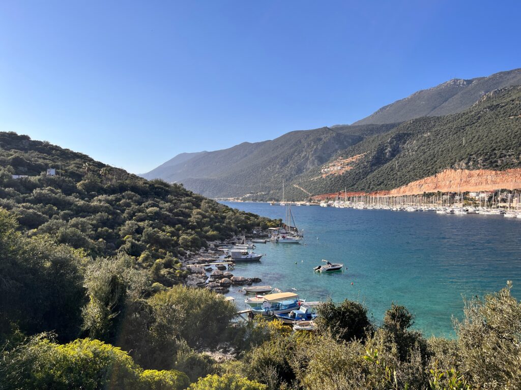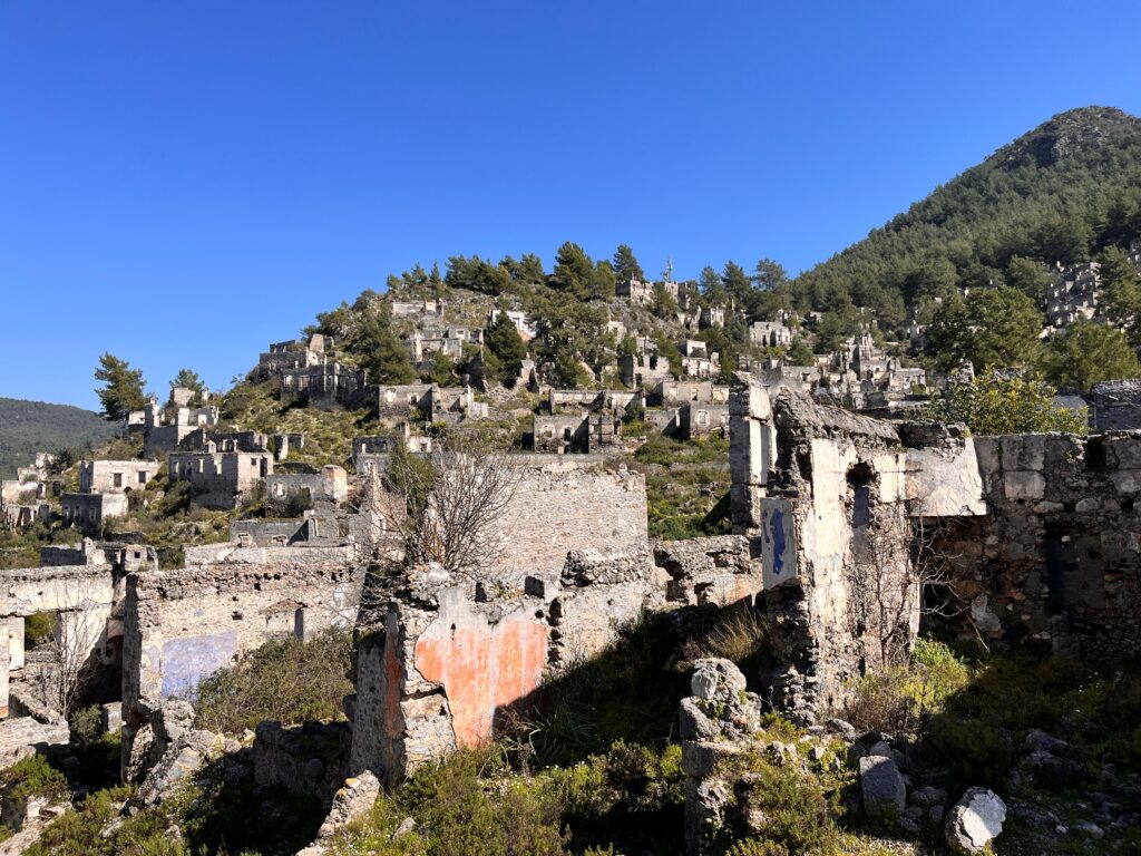 …ist eine etwa 540 Kilometer lange Wanderroute an der türkischen Mittelmeerküste, die durch antike Ruinen, türkisblaue Buchten und spektakuläre Berglandschaften führt. Die Route verbindet traditionelle Dörfer und verlassene archäologische Stätten und gilt als einer der schönsten Fernwanderwege der Welt. Zwar wollen wir keine 540km wandern, haben uns aber einen schönen Abschnitt ausgesucht, den wir in rund einer Woche begehen wollen. Unsere erste Etappe führt uns durch Gestrüpp und Wald nach Kayaköy – eine Ruinenstadt, die aufgrund des Bevölkerungs-Austausches zwischen Griechenland und der Türkei 1923 plötzlich verlassen war. Die faszinierende “Geisterstadt” macht ihrem Namen alle Ehre, denn bis auf eine Film-wütige Dame mit professionellem Kameraequipment sind wir die einzigen Besucher. Wir machen einen kurzen Stopp für einen Snack und setzen unseren Weg dann bis Ölüdeniz fort. Dort steuern wir einen Campingplatz direkt am Start des lykischen Wegs an, auch hier sind wir die einzigen Gäste – Nebensaison lässt grüßen. Auch wenn das Wetter spitze ist, wird es früh dunkel und kühlt in der Nacht extrem ab. Der Ort selbst erinnert uns ein bisschen an Kayaköy, denn auch hier ist nicht viel los, allerdings nur im Moment. Beim Abendessen bekommen wir zu spüren, dass, wie man sich so erzählt, die Gegend fest in der Hand von englischen Rentnern sein soll. So genießen wir unseren Kebab zwischen Pint-stürzenden Briten und machen uns auf schnellstem Weg zurück in unseren Bungalow. Erster Tag geschafft.