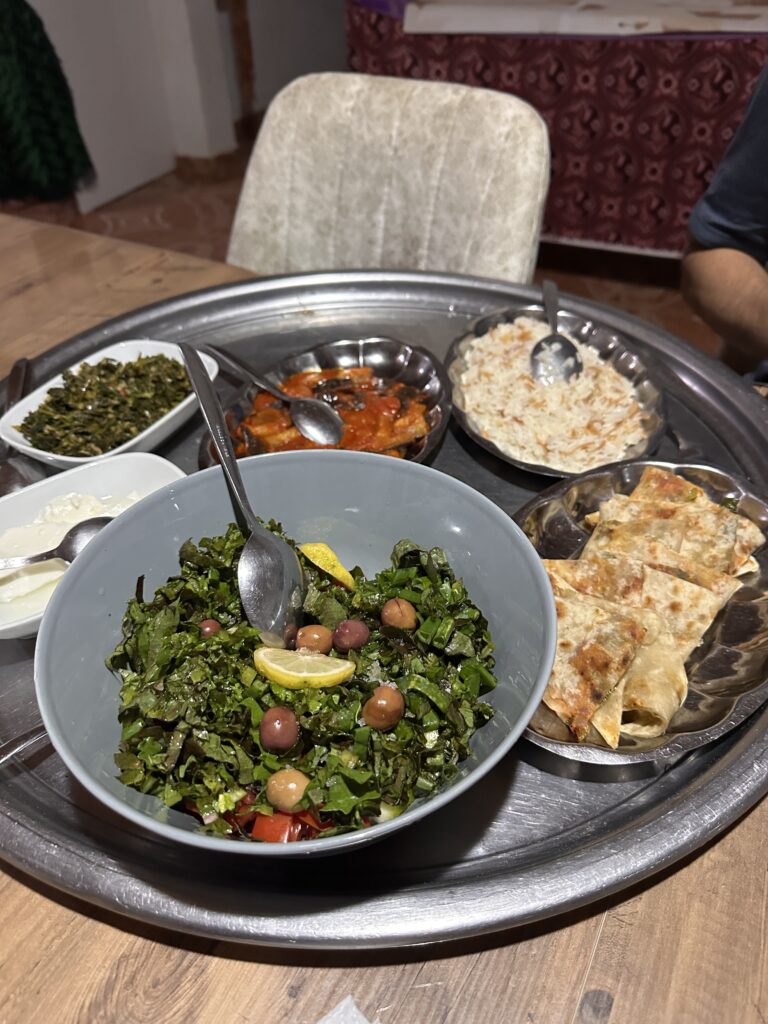 Anderen Menschen begegnen wir selten, richtig losgehen soll es hier erst so gegen April. Das bringt es mit sich, dass wir jeden Tag erst im Laufe des Tages die Unterkunft für die Nacht festlegen können – was uns wiederum die Möglichkeit beschert, die Länge der Etappe halbwegs flexibel halten zu können. Der Nachteil daran ist, dass viele Unterkünfte noch geschlossen haben. Die typische Booking Plattform, die wir häufig verwenden, steht im Clinch mit der Türkei und funktioniert nur eingeschränkt. Hier läuft das noch ein bisschen wie früher – man findet eine Telefonnummer heraus und kontaktiert den Betreiber (sofern man in den Bergen Empfang hat) oder klopft direkt an die Tür, einigt sich auf den Preis und freut sich über ein authentisches Abendessen in netter Gesellschaft 🙂 Unsere Lieblingsunterkunft ist wahrscheinlich in dem kleinen 25 Einwohner-Örtchen Bel, in Fatmas Pansiyon. Es ist Ramadan, Fatma kocht uns deshalb nach Einbruch der Dunkelheit ein schönes, türkisches Abendessen, knackt für uns Nüsse und kocht uns Çay. (Hier ein kurzer Türkisch-Exkurs: Das “ş” wird wie “sch” und das “ç” wie “tsch” ausgesprochen.) Trotz ihres fortgeschrittenen Alters ist Fatma technisch auf dem Laufenden und so können wir uns dank Übersetzer-App ein bisschen mit ihr unterhalten.