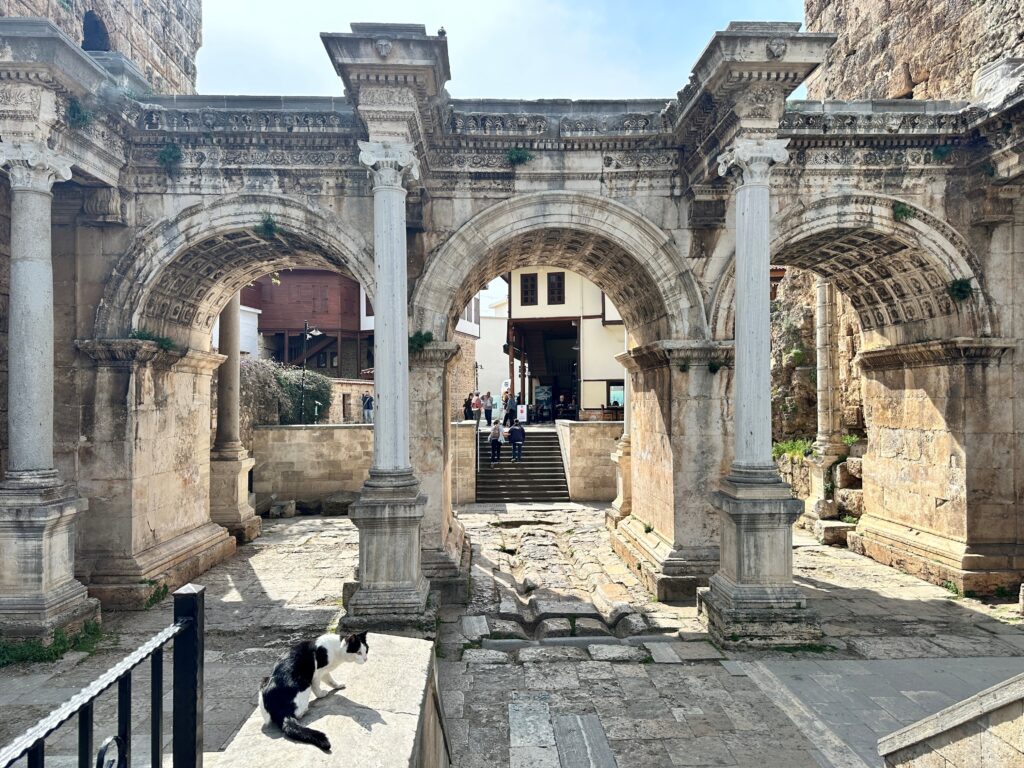 Antalya habe ich mir schlimmer vorgestellt, nach allem was ich die letzten Tage vor der Ankunft darüber gelesen habe. Es sei so sehr touristisch, nur Shops für billige Imitate und so weiter. Nach einigen Tagen hier kann ich sagen: es gibt deutlich schlimmere Orte. Es hat eine hübsche Altstadt mit Hafen, kann man vielleicht mit Rhodos vergleichen, wenn auch die Altstadt selbst kleiner ist. Es ist touristisch, es gibt viele Hotels und touristische Eisverkäufer die wie die Marktschreier rumplärren und Tourenanbieter, die einen sofort ansprechen, wenn man stehen bleibt – alles halb so wild. Außerdem gilt wie immer: Nur weil ein Ort touristisch ist, muss er nicht unauthentisch und überteuert sein. Ausgerechnet hier verlaufen wir uns in den Seitensträßchen und lernen die vermutlich beste Einkehrmöglichkeit in der Türkei kennen, nämlich die Lokantas. Hier wird Hausmannskost zu günstigen Preisen in einer Kantinen ähnlichen Umgebug zubereitet. Und diese hier ist so günstig, dass wir uns zwischendrin (ernsthaft!) fragen, ob wir in einer Art Suppenküche gelandet sind. Preis-Leistungs-Verhältnis: unschlagbar. Nach den vielen Tagen in der Natur und kleinen Örtchen sind wir wieder empfänglich für einige Tage in einem größeren Ort. Wir schauen uns die Altstadt an, chillen am Hafen und blicken auf die wunderschöne Bucht. Wir wollen uns mal wieder eine historische Stätte anschauen – Termessos – welche sich ganz in der Nähe von Antalya befindet. Die Anreise ist ein bisschen kompliziert, wir müssen hin und zurück ein Stück trampen. Hoch nimmt uns eine rumänische Familie mit, die nicht verstehen, warum die Touristen aus Deutschland kein eigenes Auto haben. Runter zwei junge Türken, für die das Trampen selbstverständlich ist und die hier in der Gegend wohnen, es aber bisher noch nie nach Termessos oder nach Istanbul geschafft haben. Die Stätte ist traumhaft zwischen den Bergen gelegen, viel davon ist kaputt aber es ist ein Relikt zum Anfassen, ja sogar zum Begehen. Historische Stelen mit Inschriften, die anderswo in Museen ausgestellt wären, liegen hier einfach so auf dem Boden rum. Wir steigen über die Trümmer bis ganz an den Rand des Berges und haben eine fantastische Aussicht, nur für uns. Unser nächster Stopp auf der Reise soll wieder mal ein workaway sein, leider verschieben unsere Hosts wegen dem jetzt beginnenden schlechten Wetter unseren Aufenthalt um ein paar Tage. So kommt es, dass wir das Wochenendes des Eid al-Fitr in Antalya verbringen. Leider schüttet es aus Eimern, und auch sonst sieht man als außenstehender nicht viel von den Festivitäten – nach allem, was wir in Erfahrung bringen können, spielen sich die Festivitäten eher zuhause im Rahmen der Familie ab. Das schlechte Wetter nutzen wir, um unseren Lern- und Planungsrückstand aufzuholen. Kaffee- und teeschlürfend beobachten wir nebenbei, wie eine ganze Mannschaft Hotelangestellter versucht eine riesige Ratte zu fangen. Jetzt freuen wir uns erstmal darauf, uns die Hände bald wieder schmutzig machen zu dürfen.